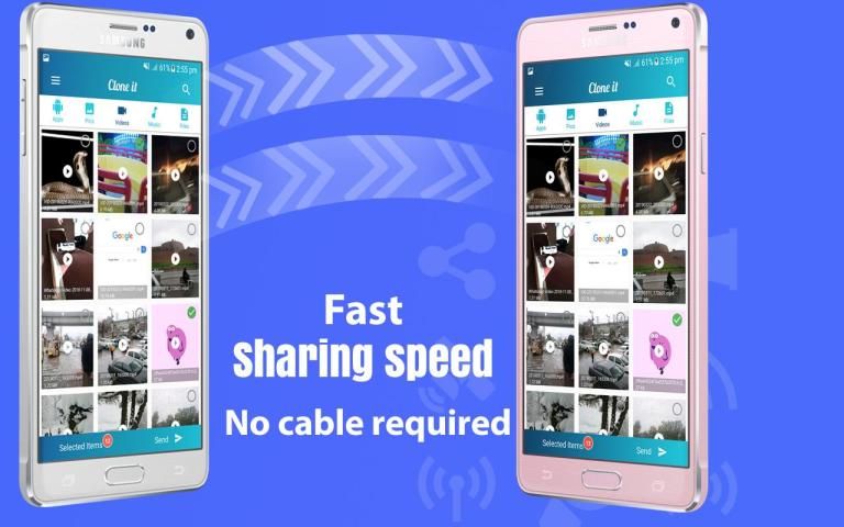 You can share all type of file which includes movies, videos, music, wallpapers, GIFs, apps, documents, picture, PDF, docs.