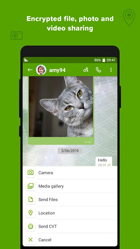 Crypviser is the only secure messaging app which keeps all your data including media files encrypted on an independent local storage. No viruses, spyware,