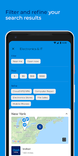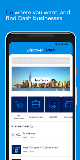The Discover Dash app helps you discover places to spend your Dash cryptocurrency when you shop on the go. It works wherever you are, right from your Android device! You can search for specific services and businesses that accept Dash. Or choose from a wide range of popular categories, such as, restaurants, Technology & IT, Dash ATMs, and many more.