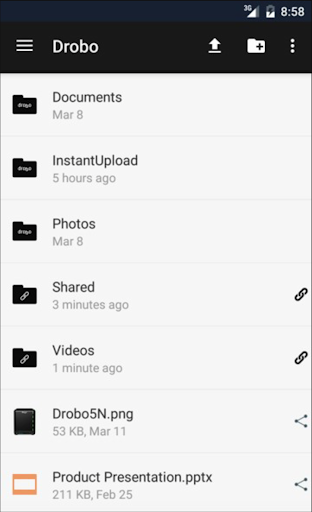With the Drobo Access Android App you can browse all of your Drobo synced files, create and edit new files, share these files and folders with co-workers, and keep the contents of those folders in sync across all of your mobile devices.
