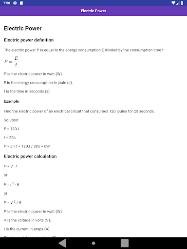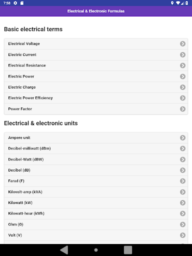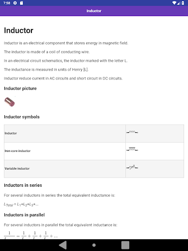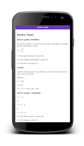 Electrical and Electronic Formulas collection for students of all grades. Offline content. You can learn important Electrical and Electronic Formulas & Terms. Content list: