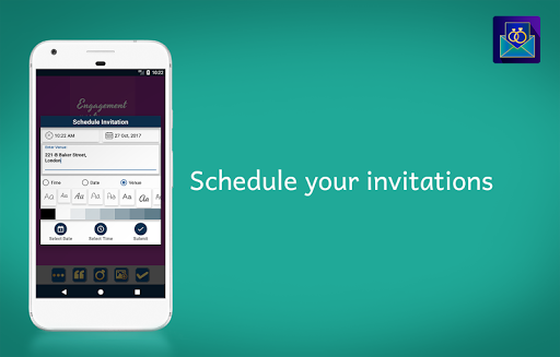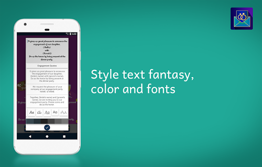 Engagement invitation card maker app specially designed for sharing engagement invitation cards to your listed contacts. It's easy to use and available with customized options.