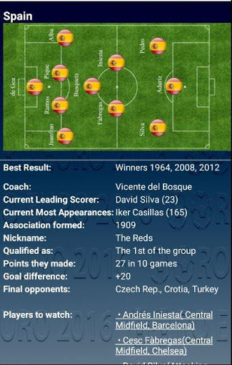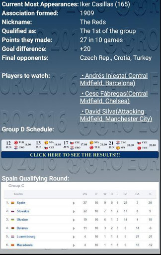 Euro 2016 undoubtedly will be the tournament of surprises. This app informs you about how the teams managed to qualify, valuable players, and youngsters to shine. Also you can follow the match schedules and results of the tournament.