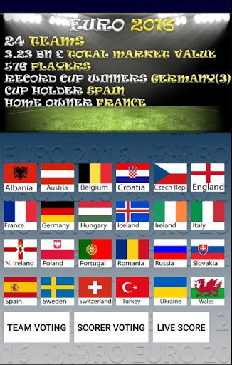 • Vote for who you think will be the top scorer! (EURO 2016 lets you vote for your favorite team and scorer)