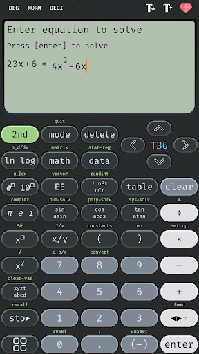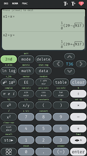 Complete calculator 36 which provide from basic calculator 36 to advanced calculator 30 includes: math, equation solver, system of equation solvers, .... The display displays expression as same as it written in text book. The calculator 36 x pro supports more than 12 digits, unlimited number of digits.