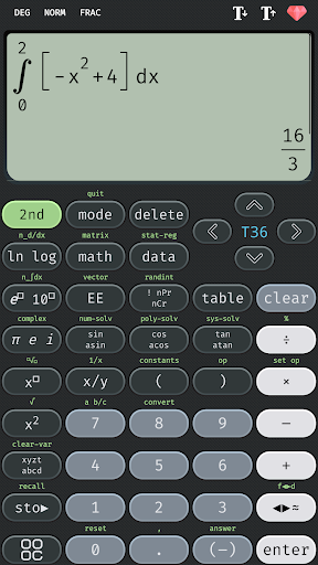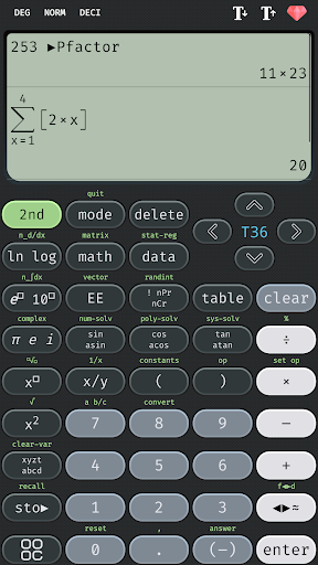 The most power scientific calculator 36 pro supports matrix and vector calculation, math, number, sin cos tan