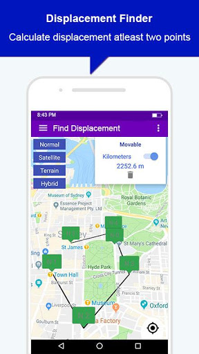 GPS Field Area Measurement is a free tool to measure area for land or distance measurement on the map with great accuracy. GPS area calculator app includes other features like displacement measurement, Land area calculator, Unit converter, GPS Compass field direction, level meter, street view, nearby places and route finder maps and navigation. Once you place the points on the map then calculate the area between all the points with remarkable accuracy. GPS area measurement app also measure the distance with quite accuracy. You can also calculate the total area of any route. Easy to use for estimate dimension of the land on the map.