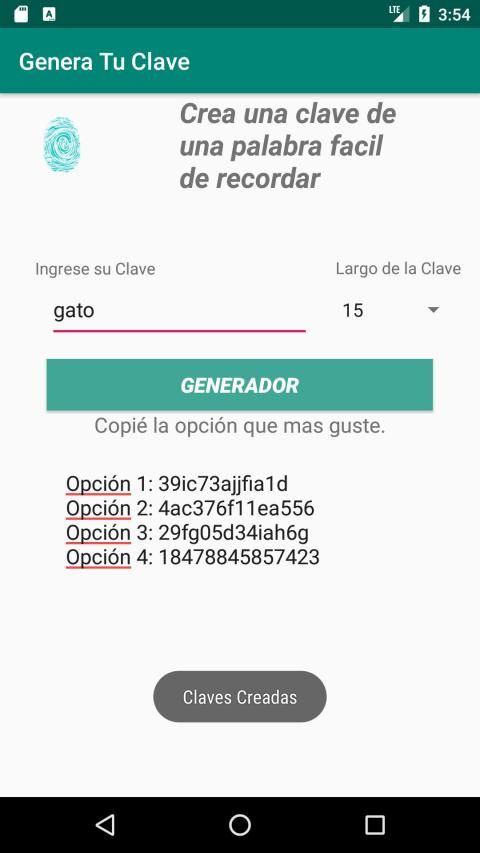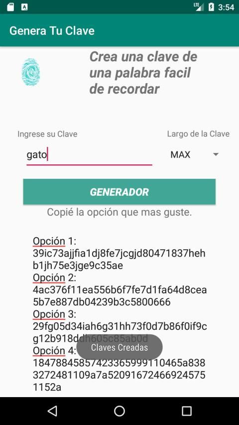 With this application you can generate keys of a simple word to remember with a single click, for example you write cat and it will give you your modified password where we will show you 4 possible options where you will choose the one you like most.