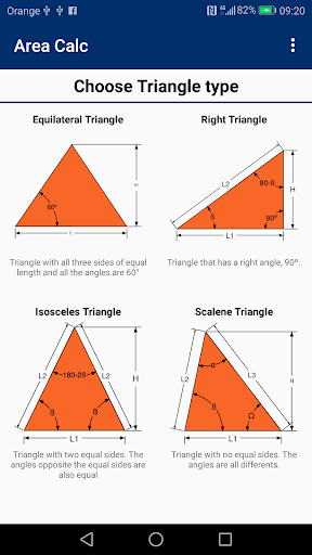 A2) Right Triangle. Calculate the area of a right Triangle, the perimeter or the height. Calculate easily the not right angle of a the right triangle