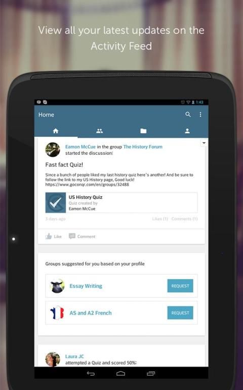 • Receive suggested learning resources or Study Groups on your personal Activity Feed