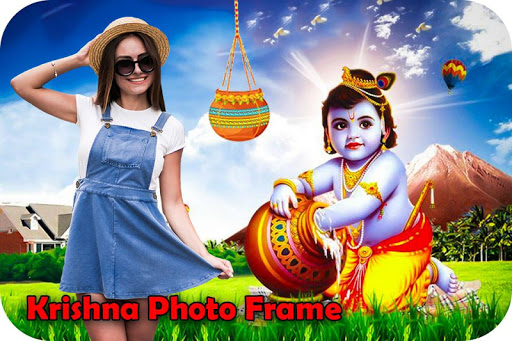 You can paste your photo in HD Krishna photo frames and set the photo angle as you need make beautiful and attractive lord Krishna photo banner.