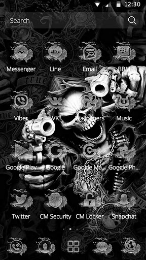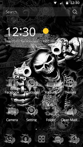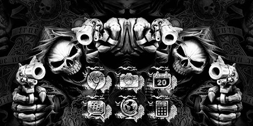 Customize your android with Hell Skull and Gun Theme with white smoke live Wallpaper! This Hell Skull and Gun theme has hd cold smoke skull live wallpaper and white light theme icons with smoke.Feel Hell Skull and Gun themed charm, cool smoke makes you dizzy! Cool smoke beauty stunning the audience! You will love this Hell skull theme on the skin. Weather backplane design and black space skull cranial of hell skeletons, let your phone screen unique! no matter what topic you before, there is now Hell skull theme, you no longer have the other!