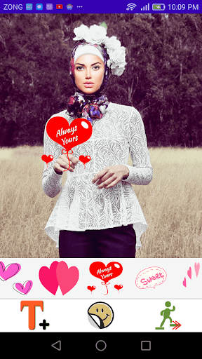 Here you can add any text on your edited picture and paste a sticker, you can choose from a list of stickers.