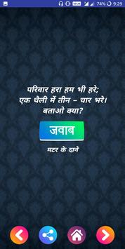 This Hindi Paheli Application contains large collection brain teasing paheli with their answers in Hindi language.This Hindi Paheli app contains large collection of Paheli in Hindi.