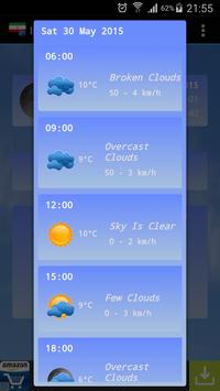 Iran Weather comes with an elegant and intuitive user interface that displays current weather data like temperature or current conditions and also forecasts with charts for high and max temperature.