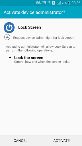 This app uses the Device Administrator permission. To use app please activevate device administrator to Lock screen.