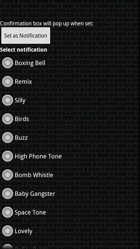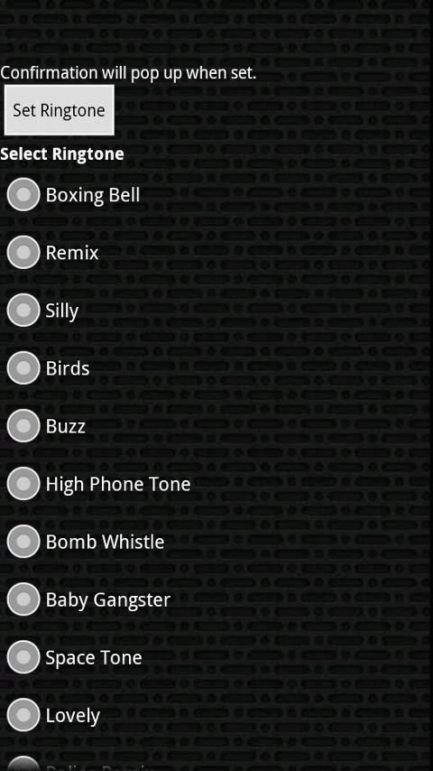* Press and hold to set default ringtone, the ringtone to a specific contact, the notification sound, or the alarm sound