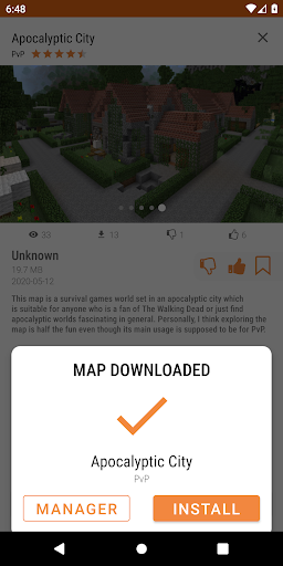 The application has a large selection of categories, such as: Adventure, Creative, Minigame, Parkour, Puzzles, PvP, Survival and Redstone!