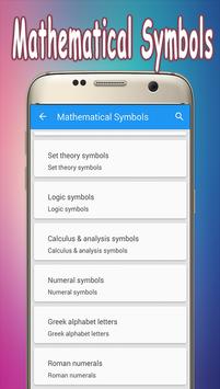 Math, Algebra, Geometry, Calculus, Alphabet, Probability and statistics symbols for students. In this app, you will get these math information’s: