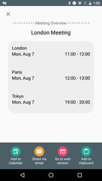 • Export a meeting to your calendar, share via e-mail or copy to the clipboard.