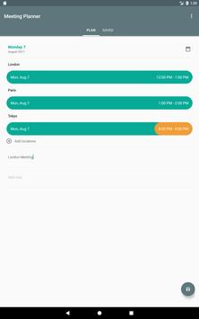 The Meeting Planner by timeanddate.com for Android calculates the most convenient meeting time and visualizes normal business hours, non-working hours, and nighttime in a simple traffic light scheme: green, yellow & red. The app takes all Daylight Saving Time clock changes worldwide into account.