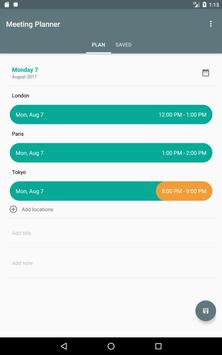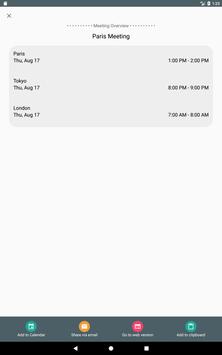 • The traffic light color-coded timetable shows the best meeting time based on each location's local time and normal business hours.