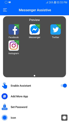 Messenger Assitive Touch - Quick access all Social networks & Apps App help you create a 'Shortcut Space' to open your favorite apps & social networks. You can manage shortcuts (add or remove), select any apps or social platforms you like. Enjoy!