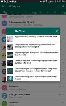 Mobogram Messenger syncing with your other devices and applications. Unlimited number of messages of text, photos, videos any file type you can send. You can create groups of up to 100,000 people.
