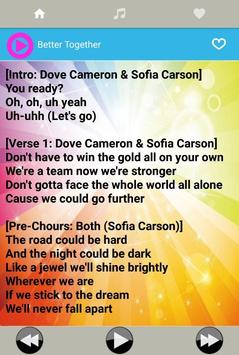 This application is great for the filling your spare time. A lot of songs from dove cameron and other descendant cast. In this app you can hear the song of descendants 2 sundtrack songs while reading the lyrics.