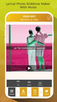 Love Lyrical Photo Slidshow Maker With Music have great collection of song lyrics select your favorite lyrics and add them on your pictures and make lyrical video of your own pictures and share your feelings with your love using your photo lyrical video.