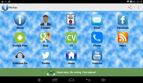 This android application includes my contact information and links to my web page, blog, news feed and so on. You can read my blog articles, twitter feed posts and facebook posts. Also you can view the local map, send me emails or contact me with direct phone number. Connect to my social networks and create new connections to your social networks.