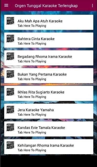 The Most Complete Karaoke Single Orgen Application ??? Are you an orgen music lover ??? If so, you are in a single orgen application that is very precise and complete. Orgen Tunggal Karaoke Complete is an application that presents a variety of popular single orgen songs and older songs single orgen version with high quality audio quality of our best choice.