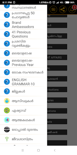 This app contains the huge collection of Malayalam GK questions which are asked frequently in the previous examinations. This app provides you the best set of question for your exam preparations. The question are categorized distinctly so that the users can easily find any question they want and remember them easily. Now this app gives more priority for LDC exam.