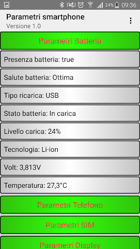 Questa applicazione permette di visualizzare i seguenti parametri: