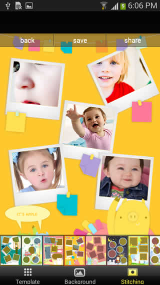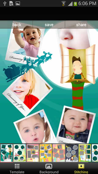 Photo Collage easy way to collect photos to one pictures and choose the effects you like such as templates, backgrounds and stitching.