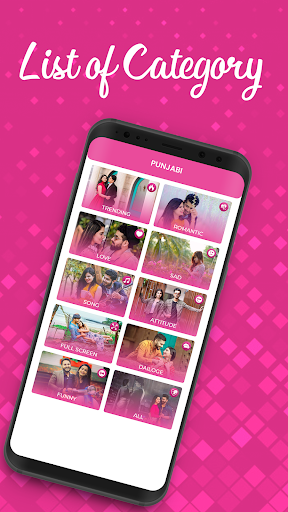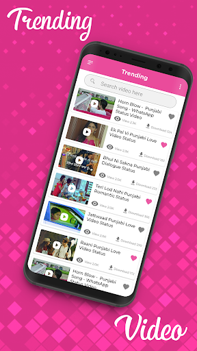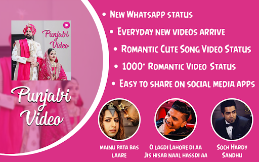 Punjabi Video Status - Punjabi Status app contains large collection of Punjabi Video Status as well as we have added video status of other Category like Love video status, Sad video status, Romantic video status. All videos are free. You can watch and download any video you like and easily use that as status on your any social media application like Whatsapp, Instagram and Facebook.