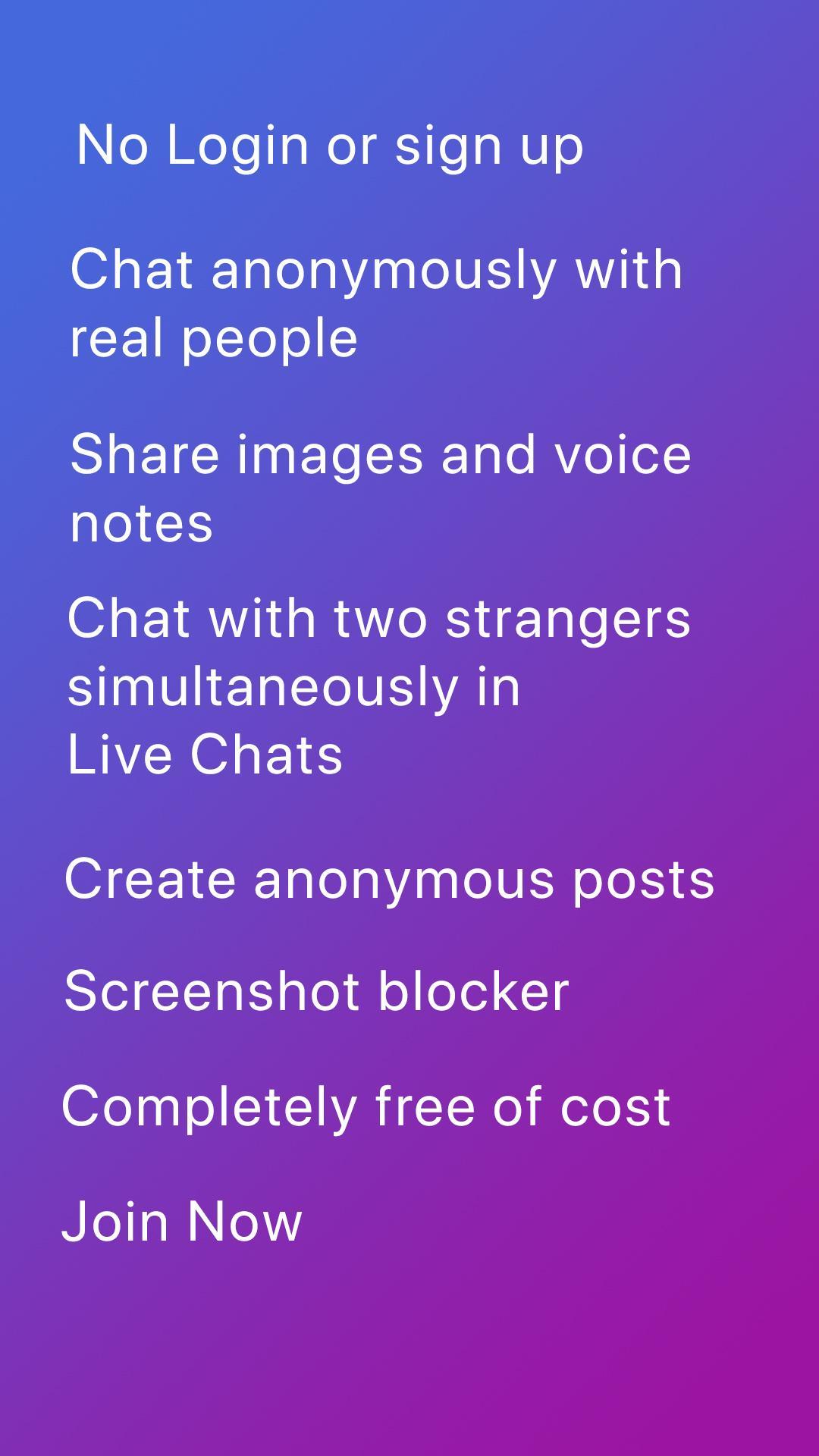 Random Chat ( TukTuk ) is an application which allow you to meet and chat with strangers anonymously. You don’t need to create any login or account. Just start one to one chat with a single tap. Very Simple!