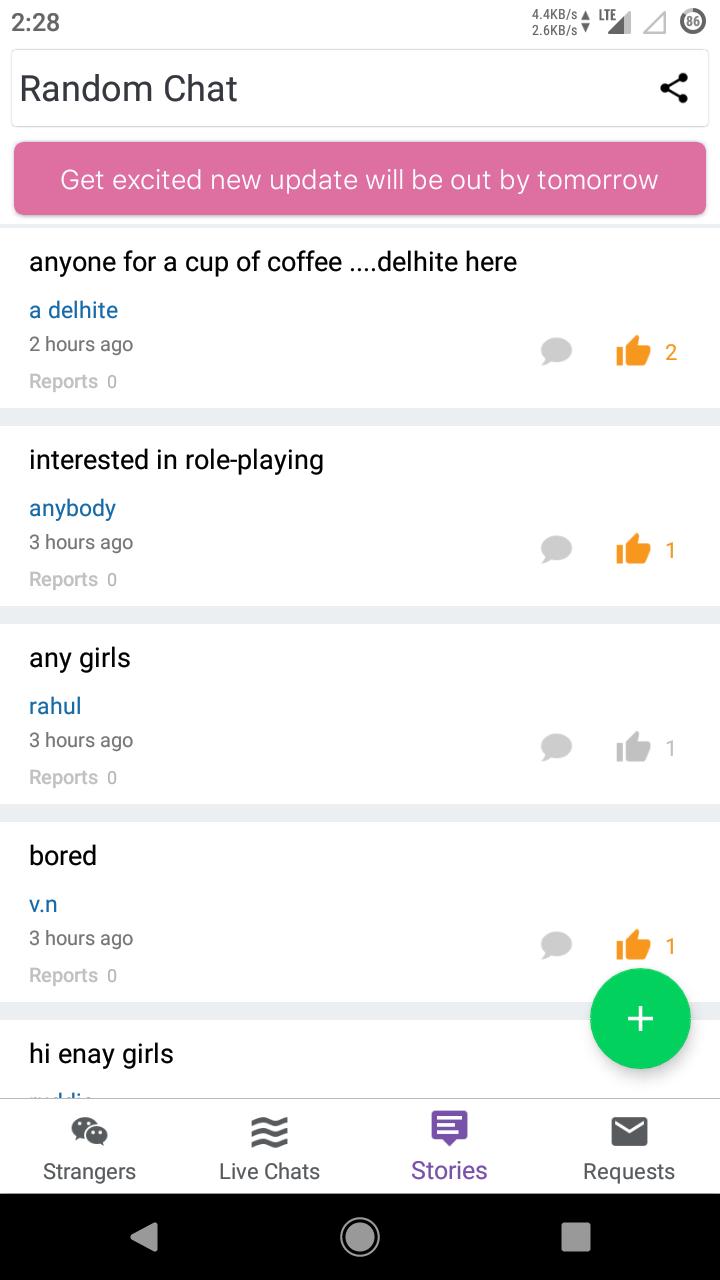 3. A feed where you can post short stories to share with all the strangers anonymously.
