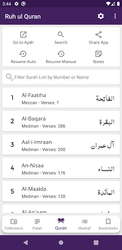 - Mushaf Mode: Recite Quran with Translation (Tarjuma) or Tafseer