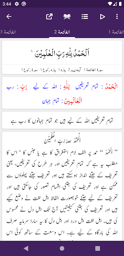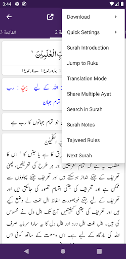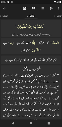 - Ability to show/hide Word by Word, Quran Translation (Tarjuma) and Tafseer