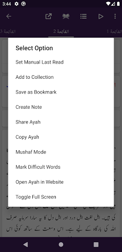 - Share Ayah with or without Quran Translation (Tarjuma) and Tafseer