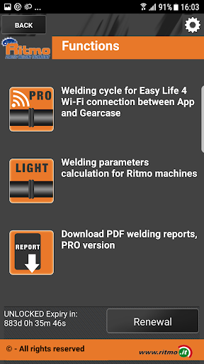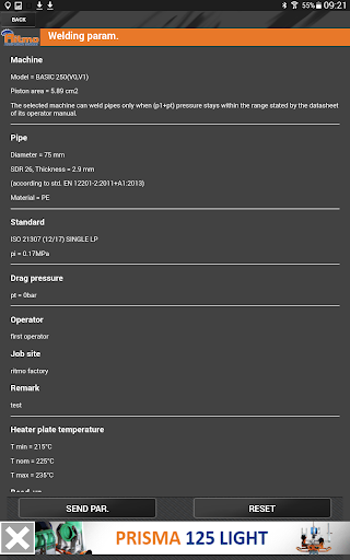 "SET & GO PRO" app developed by RITMO S.p.A. for its butt welders.