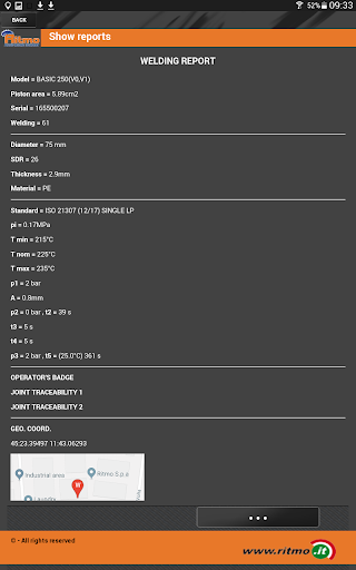 With a detailed report at the end of each weld you have all the technical data with exact graphs and parameters to compare against international welding standards and geolocation map.