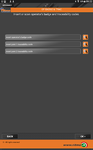 FEATURES: Wi-Fi connection between this app and EasyLife v4 control unit. Calculation of welding parameters and transmission to the control unit. Possibility of reading the barcodes of the operator badge and of the traceability codes of the tubes. Possibility to memorize GPS position. Possibility to store a photograph of the site before and after the welding. Welding phases assisted by the app. Save welding report in a local database on the device. Ability to search, view, delete saved reports. Possibility of correcting the GPS memorized position in case of tubes displacement. Possibility to share saved reports in pdf format.