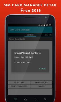 sim card manager 2016 may be a little tool that reads your sim card and provides you a great many useful informations. It additionally assist you to manage contacts in you sim card, you'll read all of your contacts hold on on sim card, produce a replacement contacts , modify a contact or delete contact(s).