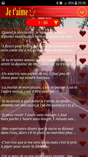 L'application a une collection de messages d'amour et de citations d'amour à partager en un seul clic via des réseaux sociaux