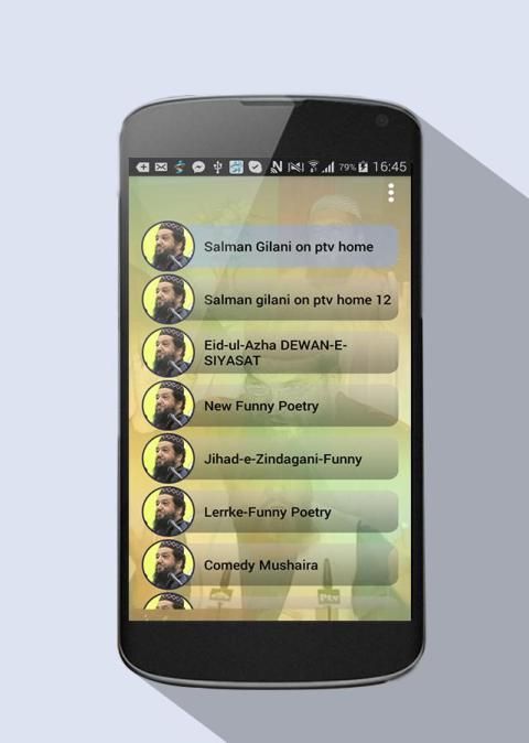 In this Salman Gilani poetry app you can listen a large collection of Funny Urdu Video Poetry by Pakistani popular poet Salman Gilani voice. This application contain different categories of funny poetries on Eid u fither, Girls and etc. You enjoy this application, it designed for funny poetry lovers. Hope all Salmani Gilani fans are gonna love this application. Be expressive with words of your heartiest love and expressions with our urdu funny poetry. You can share the lovely poetry to your love ones. There are some different backgrounds which you can change it. Stay tuned, and we will include some new poetry about love, romance, heart break, break ups, life and destiny. This beautiful application contains Poetry of the most famous Pakistani Urdu poet Salman Gilani, enjoy this beautiful app which is just for you.