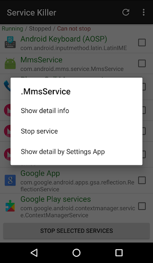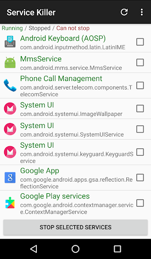 - Some services are protected by mechanisms such as Permission of Android.Therefore, there is a service that can not stop at Service Killer.