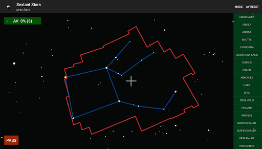 Horizon view with interactive rote learning modes * 'Recognize' mode randomly highlights stars/constellations. How many can you name? * 'Find' mode does the converse. Given their names, become adept at pointing out the stars' positions!
