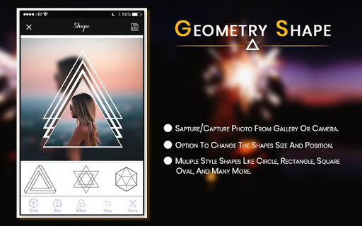 Create a better Geometry Camera - Shape Photo Editor for pic photo Collage Maker, Making Creative Frames on Photo. Picture in Picture Awesome Effects Very Easy to Use Circle Photo Editor, Just Select Photo From Gallery or Camera and Apply Geometry Shape on your Selected Photo.